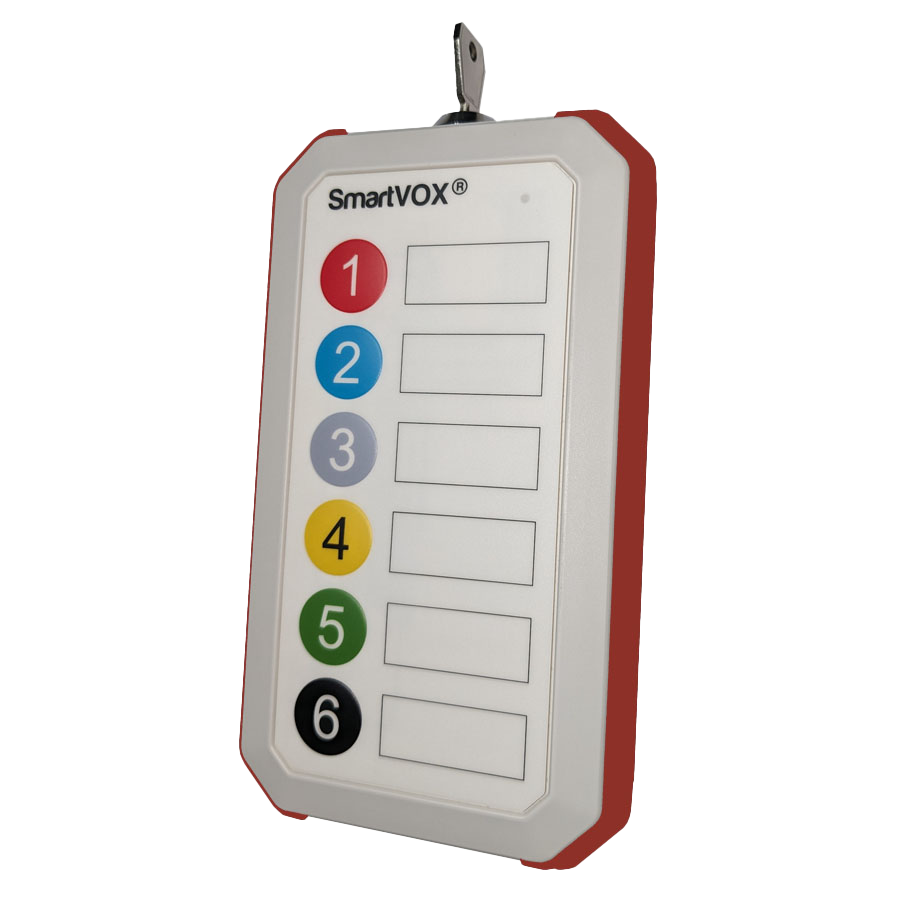 - Le boîtier de déclenchement radio 6 boutons est compatible avec l’ensemble de la gamme SmartVOX®. Chaque bouton permet d’activer un scénario d’alerte 100 % personnalisable. Ces scénarios peuvent être diffusés sur une seule sirène SV ou sur un groupe de sirènes.