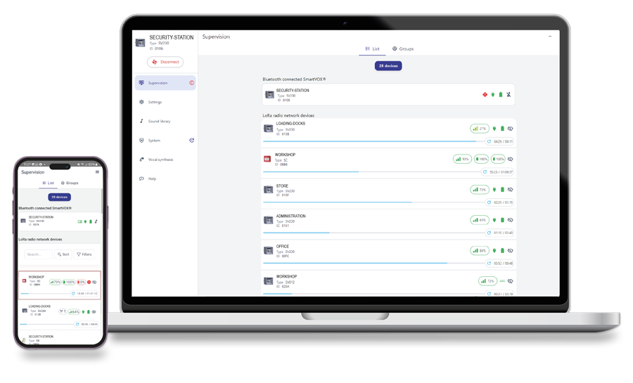 Le système d’alerte sonore SmartVOX® est entièrement surveillé et personnalisable via une application de supervision disponible sur PC et mobile